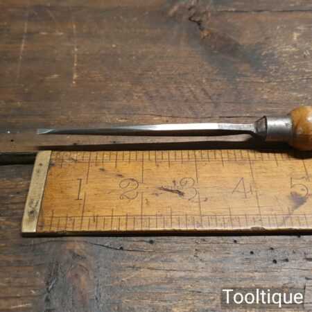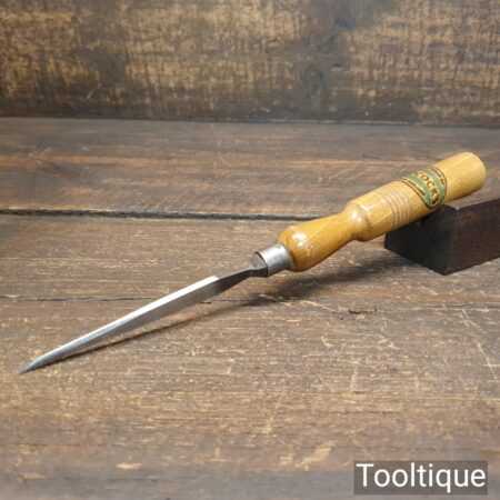 Vintage F. Woodcock carpenter’s/wood carver’s 1/8” sash mortice chisel with beechwood handle, in good used condition, fully refurbished, sharpened and honed ready for use.