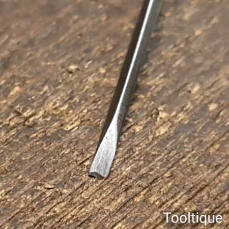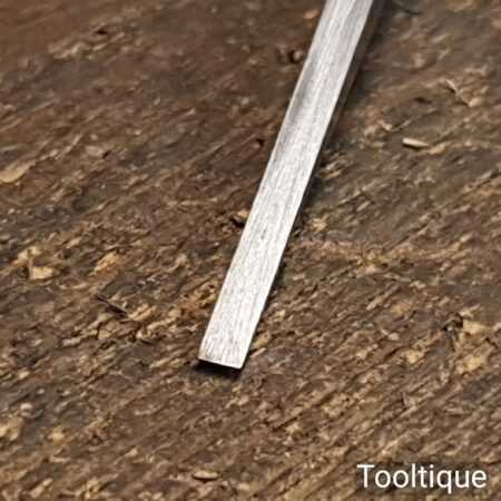 The chisel has been checked to ensure the tang is seated properly and the handle is solid and fit for use. All refurbished chisels are water cooled during the sharpening process to ensure the tempering is not affected.
