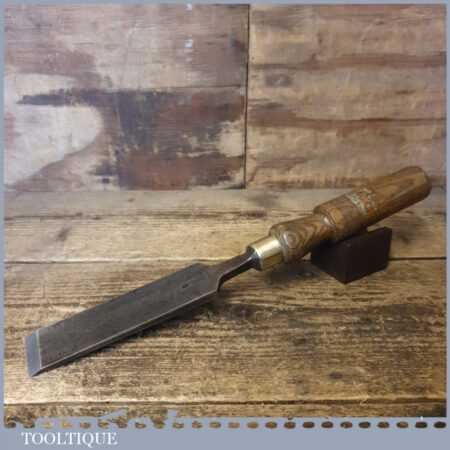 Vintage F. Woodcock carpenter’s 1 ½” firmer chisel with ash handle in good used condition, fully refurbished sharpened and honed ready for use.