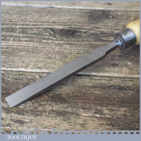 The chisel has been checked to ensure the tang is seated properly and the handle is solid and fit for use. All refurbished chisels are water cooled during the sharpening process to ensure the tempering is not affected.