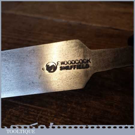 Vintage F. Woodcock carpenter’s 1” flat firmer chisel (stamped with crowsfoot broad arrow and dated 1941) with reinforced ash handle in good used condition, fully refurbished sharpened and honed ready for use.