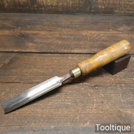 The chisel has been checked to ensure the tang is seated properly and the handle is solid and fit for use. All refurbished chisels are water cooled during the sharpening process to ensure the tempering is not affected.