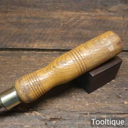 Vintage F. Woodcock carpenter’s 13/16” forged cast steel gouge chisel with ash handle in good used condition, fully refurbished sharpened and honed ready for use.