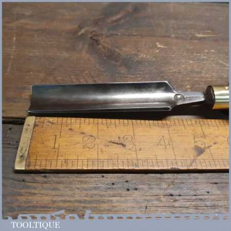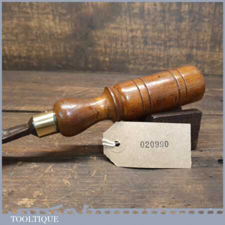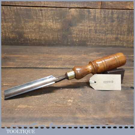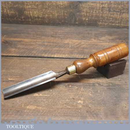 Vintage F. Woodcock carpenter’s 15/16” gouge chisel with beechwood handle in good used condition, fully refurbished sharpened and honed ready for use.