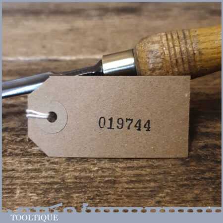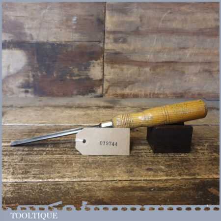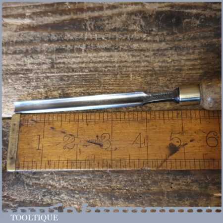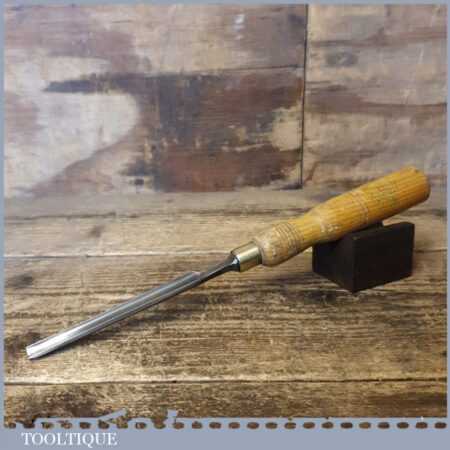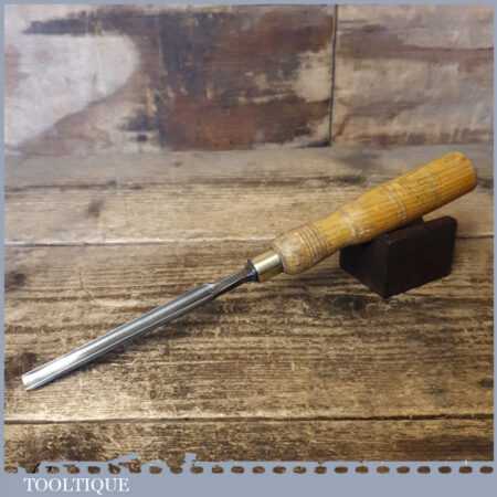 Vintage F. Woodcock carpenter’s 3/8” gouge chisel with ash handle in good used condition, fully refurbished sharpened and honed ready for use.