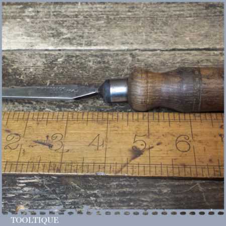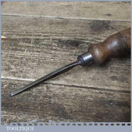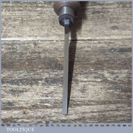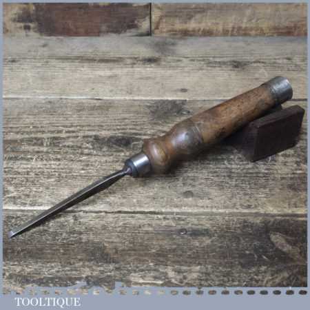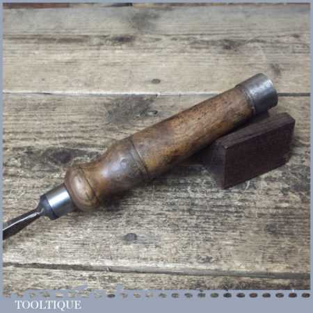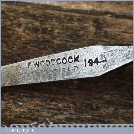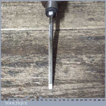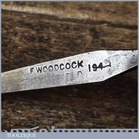 Vintage F. Woodcock carpenter’s 5/32” cast steel sash mortice chisel with reinforced ash handle in good used condition, fully refurbished sharpened and honed ready for use.