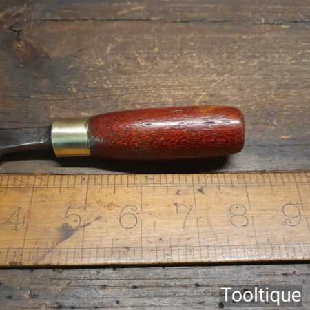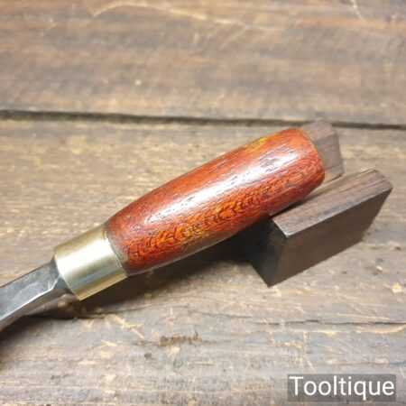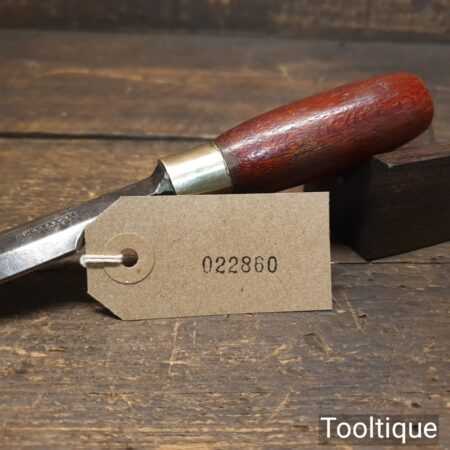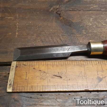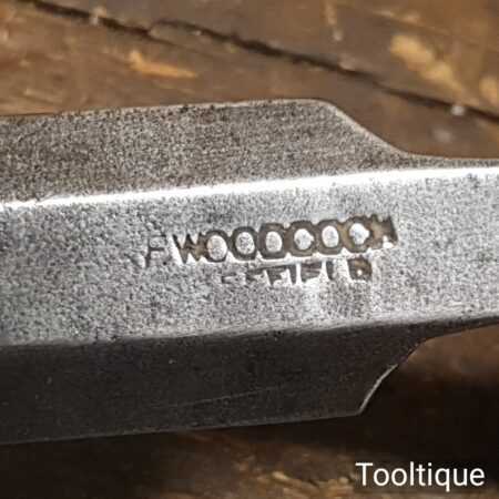 Vintage F. Woodcock carpenter’s 7/8” bevel edge butt chisel with mahogany handle in good used condition, fully refurbished sharpened and honed ready for use. Note: These are surprisingly handy size and fit comfortably in the hand.