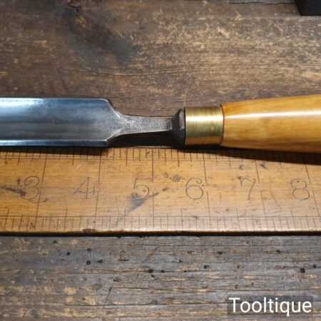Vintage F. Woodcock Sheffield 7/8” gouge chisel with boxwood handle in good used condition, fully refurbished sharpened and honed ready for use.