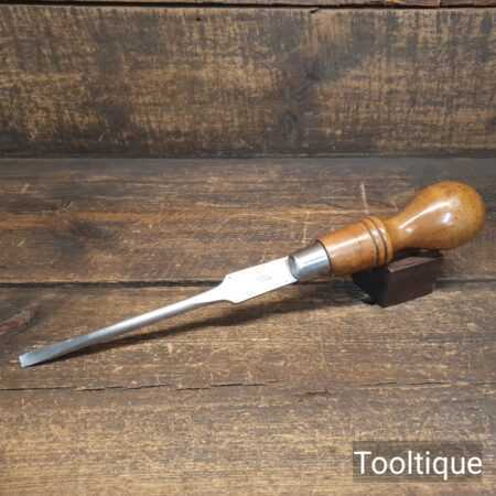Vintage Fedco 13 ½” turnscrew screwdriver with boxwood handles, refurbished ready for use and in good used condition. Note: When redressing the heads this is carried out with coolant to ensure the temper is not affected.