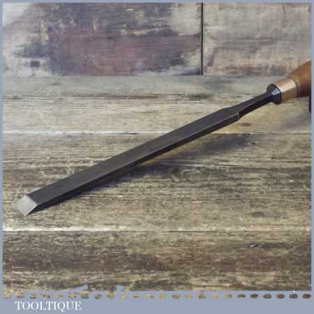 The chisel has been checked to ensure the tang is seated properly and the handle is solid and fit for use. All refurbished chisels are water cooled during the sharpening process to ensure the tempering is not affected. These old cast steel chisels are hand forged and far superior in quality because of the high carbon steel that was used which produces a keener edge, this was also generally used throughout the full length.