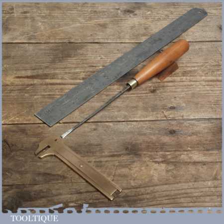Vintage forged steel carving chisel by Marples & Sons in good condition and has been sharpened & honed ready for use, this flat end chisel measures approx 1/8” wide.