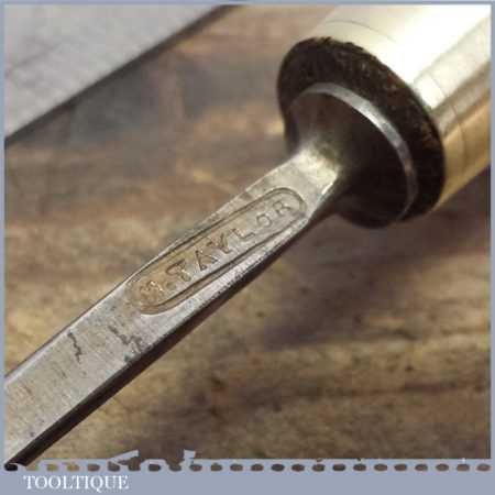 Vintage forged steel carving chisel by HENRY TAYLOR in good condition and has been sharpened & honed ready for use, this spoon bit measures approx 1/8” wide.