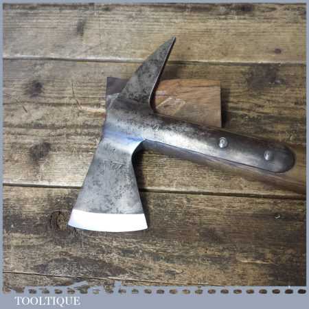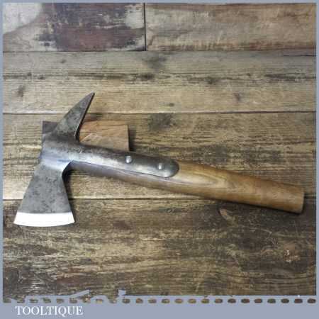 Vintage fireman’s strapped hand axe in good used condition, sharpened and honed ready for use. Note: the handle has been shortened.