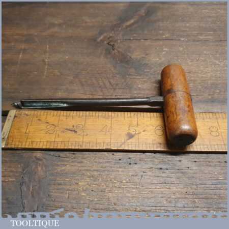 Vintage flat tang 3/8” shell gimlet with beechwood handle in good used condition.