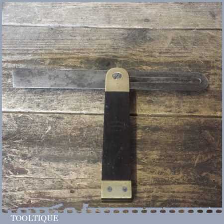Vintage Flather & Sons Sheffield Ebony and brass sliding bevel with 9” blade in good used condition.