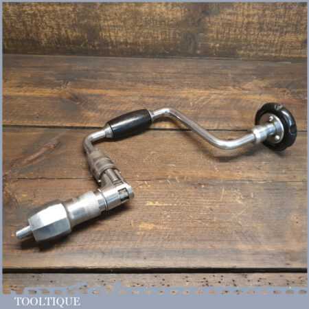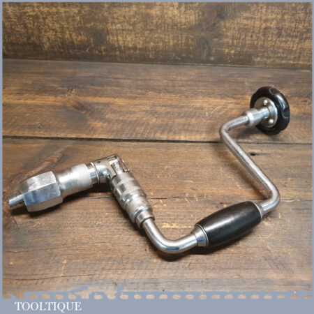 Vintage FLL Sheffield carpenter’s ratchet brace with beechwood handles and a 10” swing in good used condition, refurbished ready for use.