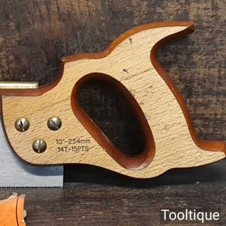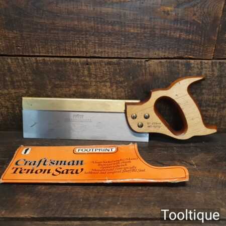 Vintage Footprint 10” brass back tenon saw with 14 tpi in case, fully refurbished and sharpened rip ready for use.