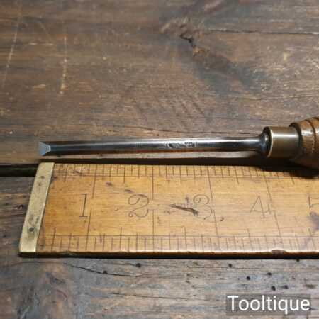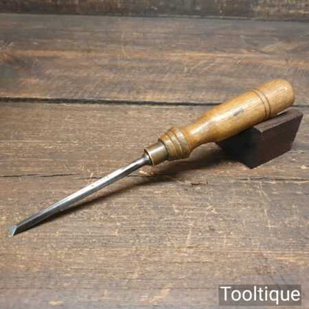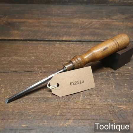 Vintage Footprint carpenter’s 1/4” bevel edge chisel with ash handle in good used condition, fully refurbished sharpened and honed ready for use.