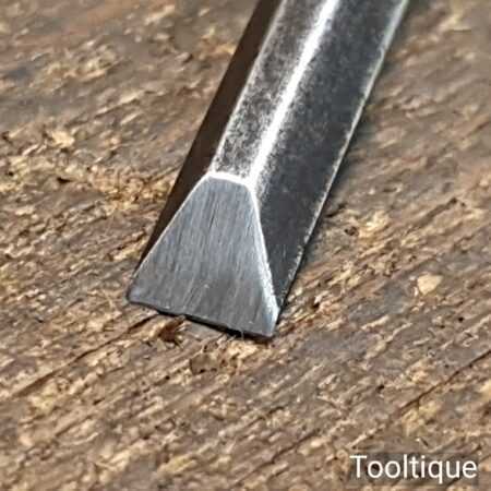 The chisel has been checked to ensure the tang is seated properly and the handle is solid and fit for use. All refurbished chisels are water cooled during the sharpening process to ensure the tempering is not affected.