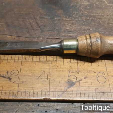 Vintage Footprint carpenter’s 3/8” firmer chisel with ash handle in good used condition, fully refurbished sharpened and honed ready for use.