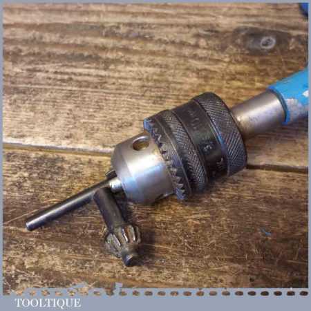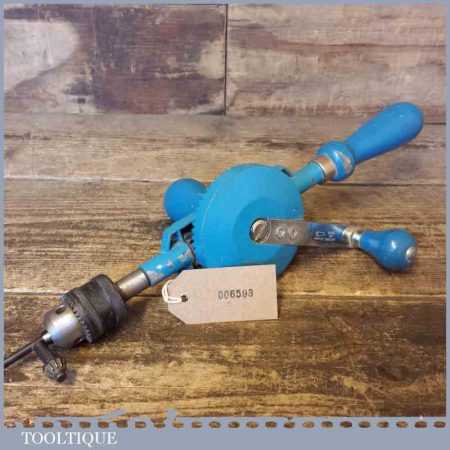 Vintage Footprint No: 160A Egg beater hand drill with a 3/8” Jacobs Chuck and key in good used condition.