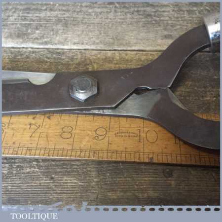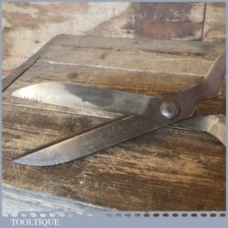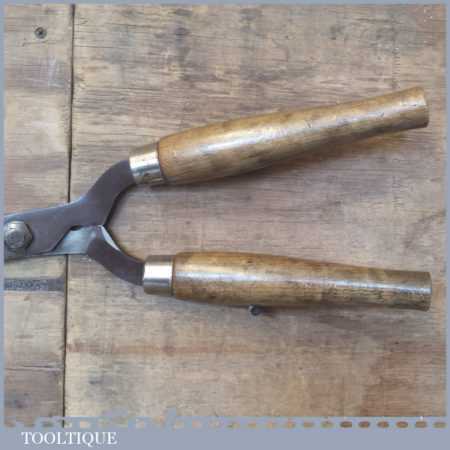 Vintage forged cast steel garden shears with beechwood handles in good used condition, fully refurbished sharpened and honed ready for use. These have been properly sharpened where they will slice rather than hack and will cut paper like scissors. Note: Handles look to have been slightly shortened but these still work well.