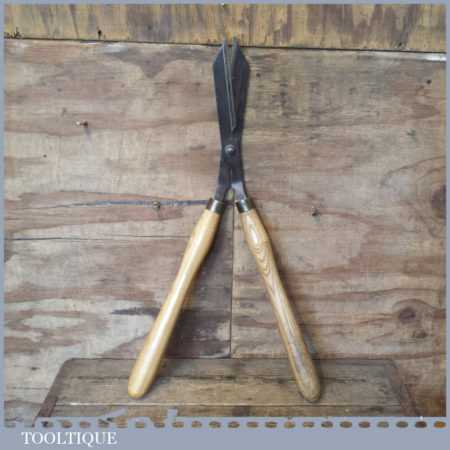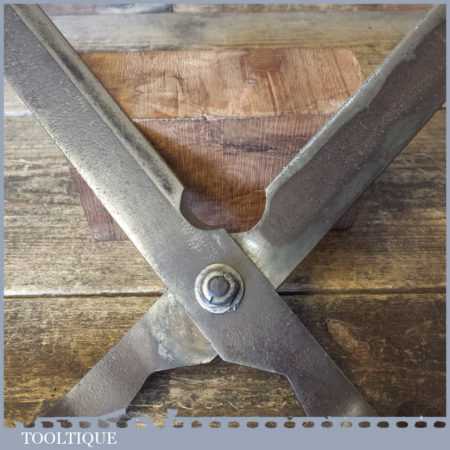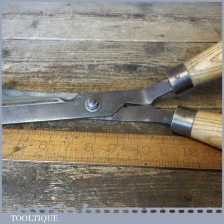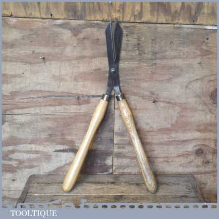 Vintage forged cast steel garden shears with beechwood handles in good used condition, fully refurbished sharpened and honed ready for use. Note: these have been properly sharpened where they will slice rather than hack and will cut paper like scissors.