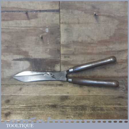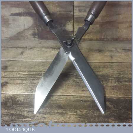 Vintage forged cast steel garden shears with beechwood handles in good used condition, fully refurbished sharpened and honed ready for use. Note: This has been properly sharpened where they will slice rather than hack and will cut paper like scissors, it took some work but worth the effort.