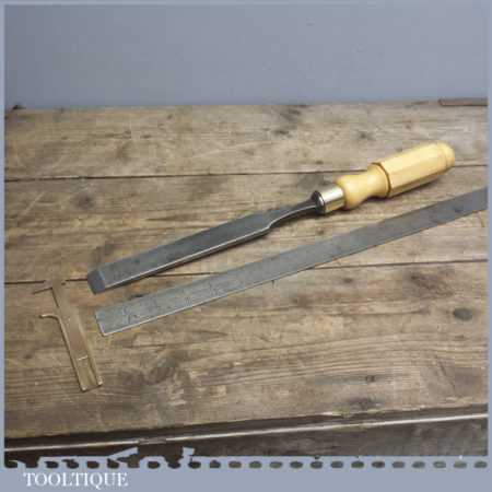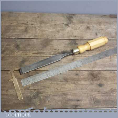 Vintage forged steel paring chisel in good condition and has been sharpened & honed ready for use, this firmer measures approx 1 1/8” wide, re-handled with boxwood London pattern handle.