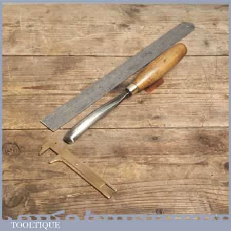 Vintage forged steel woodcarving chisel in good condition and has been sharpened & honed ready for use, this curved stem gouge measures approx 5/8” wide.