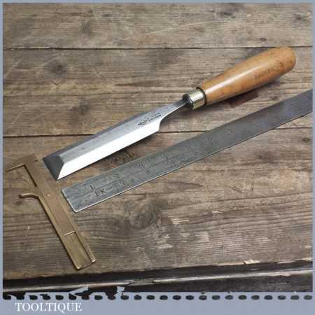 Vintage forged steel chisel by A HILDICK of Sheffield in good condition and has been sharpened & honed ready for use, this bevel edge chisel measures approx 1 1/4” wide.