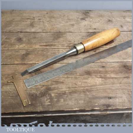Vintage forged steel chisel probably by MARPLES as these are generally marked on the handles, it’s in good condition and has been sharpened & honed ready for use, this bevel edge chisel measures approx 1/2” wide.