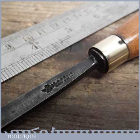 Vintage forged steel carving chisel by S J Addis of Sheffield is in good condition and has been sharpened & honed ready for use, this dog leg straight chisel measures approx 3/8” wide.
