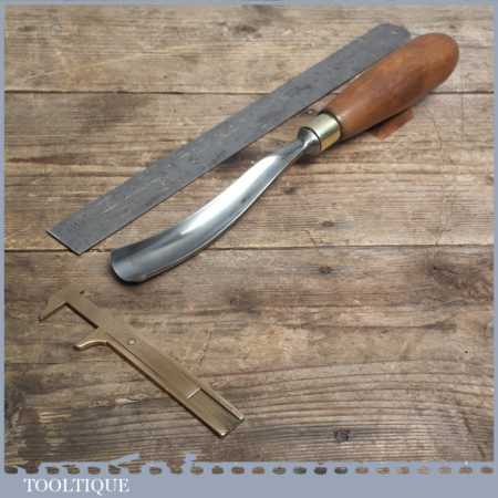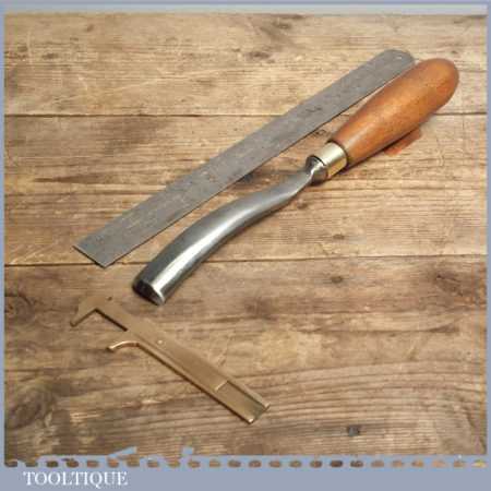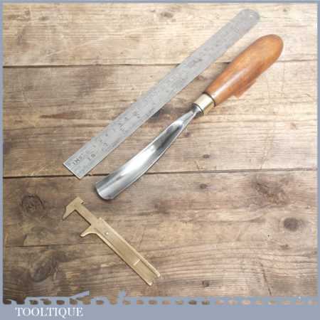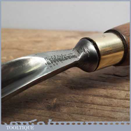 Vintage forged steel carving chisel in Sheffield is in good condition and has been sharpened & honed ready for use, this curved stem gouge measures approx 1” wide.