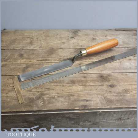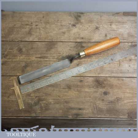 Vintage forged steel cranked paring chisel by ASHLEY ISLES in good condition and has been sharpened & honed ready for use, this bent stem gouge measures approx 1 1/4” wide.