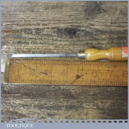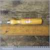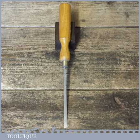 The chisel has been checked to ensure the tang is seated properly and the handle is solid and fit for use. All refurbished chisels are water cooled during the sharpening process to ensure the tempering is not affected. These old cast steel chisels are hand forged and far superior in quality because of the high carbon steel that was used which produces a keener edge, this was also generally used throughout the full length.