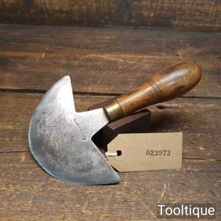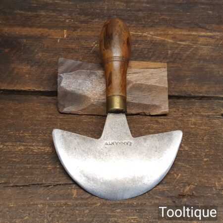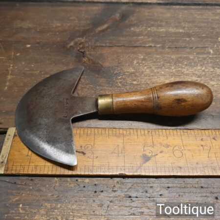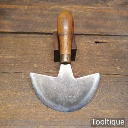 Vintage French leatherworking 4 ½” half-moon head knife with beechwood handle in good used condition