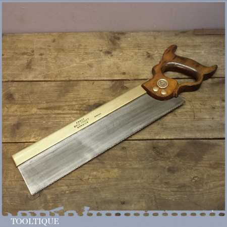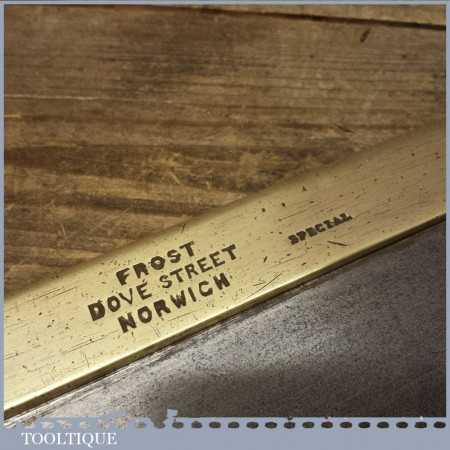 Vintage Frost of Norwich 14 inch brass back bench saw with 10 tpi and in good used condition. Frost’s were retailers rather than manufacturers and often had quality tools branded with their name. The saw is straight and pretty sharp although I always say a seasoned woodworker could always improve it.