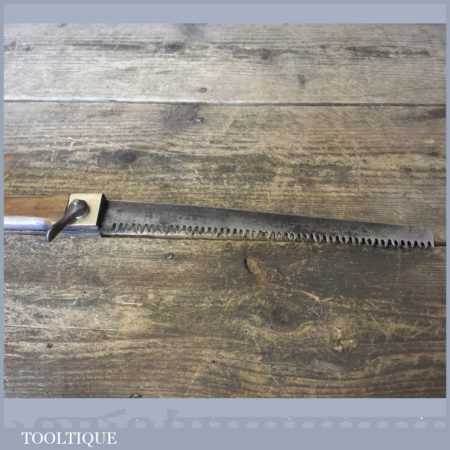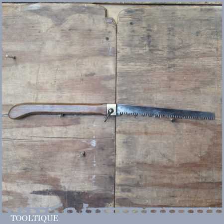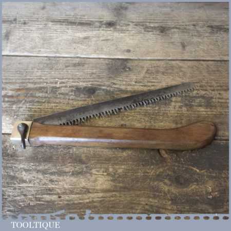 Vintage gardener’s folding pruning saw with beechwood and brass handle, fully refurbished ready for use. Note: one of the teeth are missing abut will still do the job.