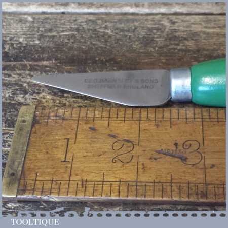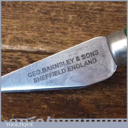 Vintage ‘new old stock’ Geo. Barnsley & Sons. clickers leatherworking breasting shoe knife with beechwood handle, in unused condition. These are nice quality tools with good quality high carbon steel made in around the 1960’s