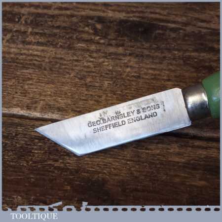 Vintage ‘new old stock’ Geo. Barnsley & Sons leatherworking breasting knife with beechwood handle, in unused condition. These are nice quality tools with good steel made in around the 1960’s.