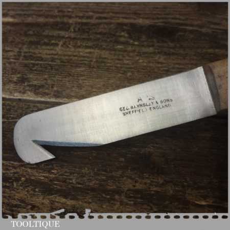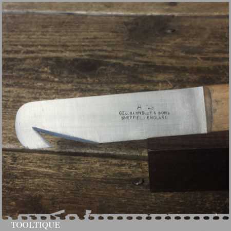 Vintage ‘New Old Stock’ Geo. Barnsley & Sons cobbler’s hooked shoe knife used for trimming rubber with beechwood handle in unused condition. These are nice quality tools with good steel made in around the 1960’s.