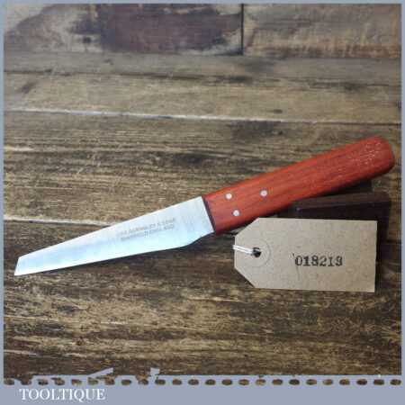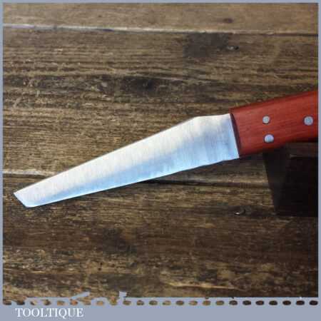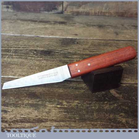 Vintage ‘new old stock’ Geo. Barnsley & Sons leatherworking heel paring shoe knife with mahogany handle, in unused condition. These are nice quality tools with good quality high carbon steel made in around the 1960’s.