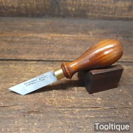 Vintage George Barnsley leatherworking skiving knife with a cherrywood handle in good condition. Note: New old stock refinished, sharpened and honed ready for use.