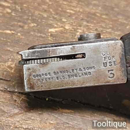 Vintage George Barnsley leatherworking slide box wheel with beechwood handle in good used condition.