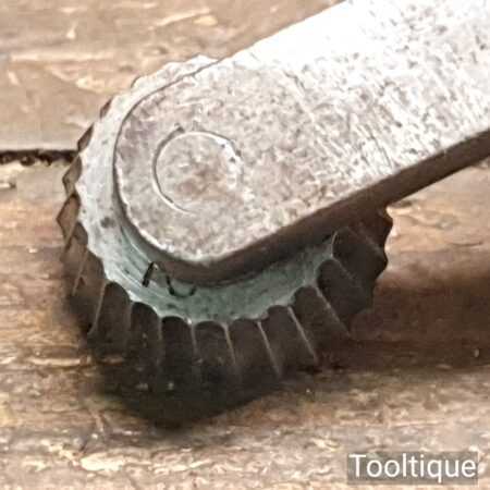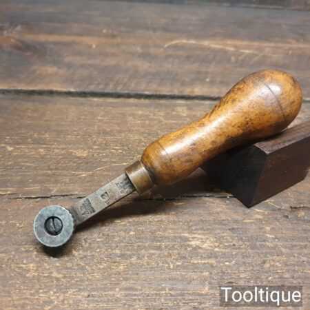 Vintage George Barnsley shoemaker’s leatherworking No: 12 fudge wheel with beechwood handle in good used condition.