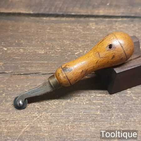 Vintage George Barnsley shoemaker’s waist wheel with beechwood handle, in good used condition.