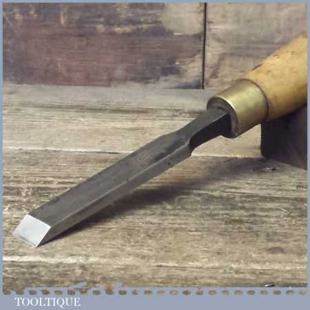 The chisel has been checked to ensure the tang is seated properly and the handle is solid and fit for use. All refurbished chisels are water cooled during the sharpening process to ensure the tempering is not affected. These old cast steel chisels are hand forged and far superior in quality because of the high carbon steel that was used which produces a keener edge, this was also generally used throughout the full length.