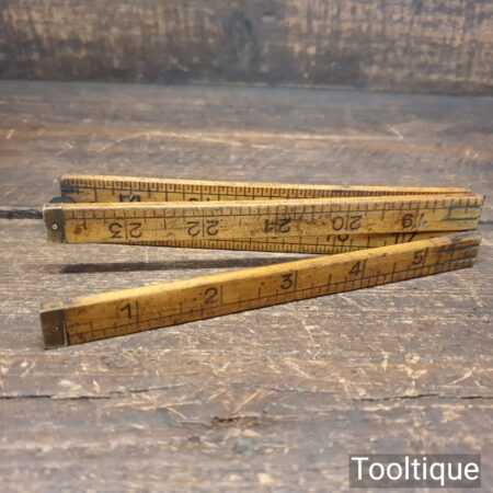 Vintage German boxwood 24” brass double-sided folding rule in good used condition