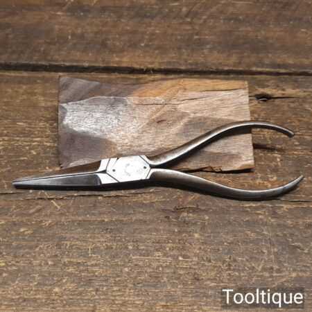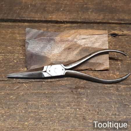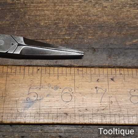 Vintage German cast steel tapered sided long-nosed pliers in good used condition, these early 20th century tools were typically marked foreign.